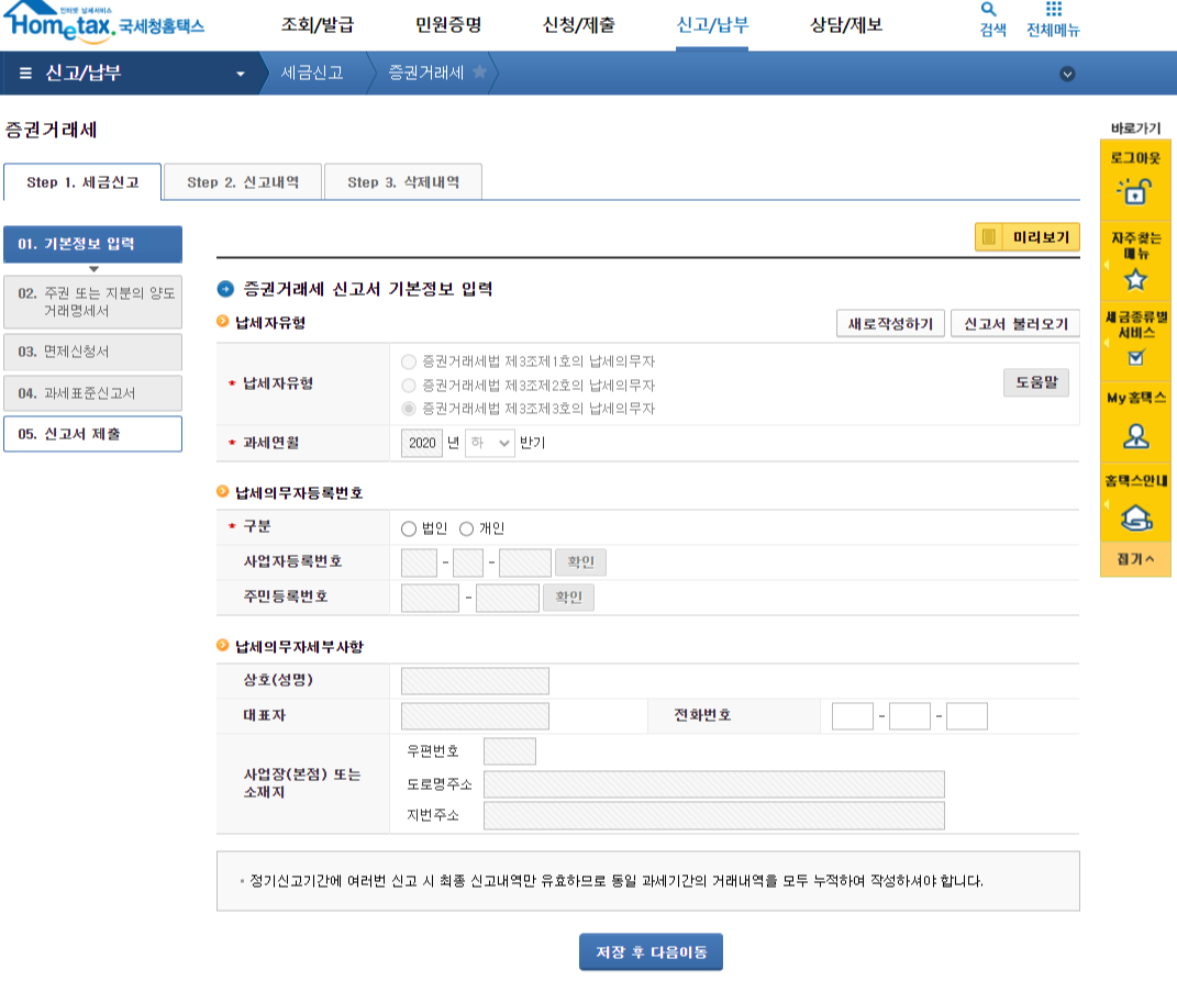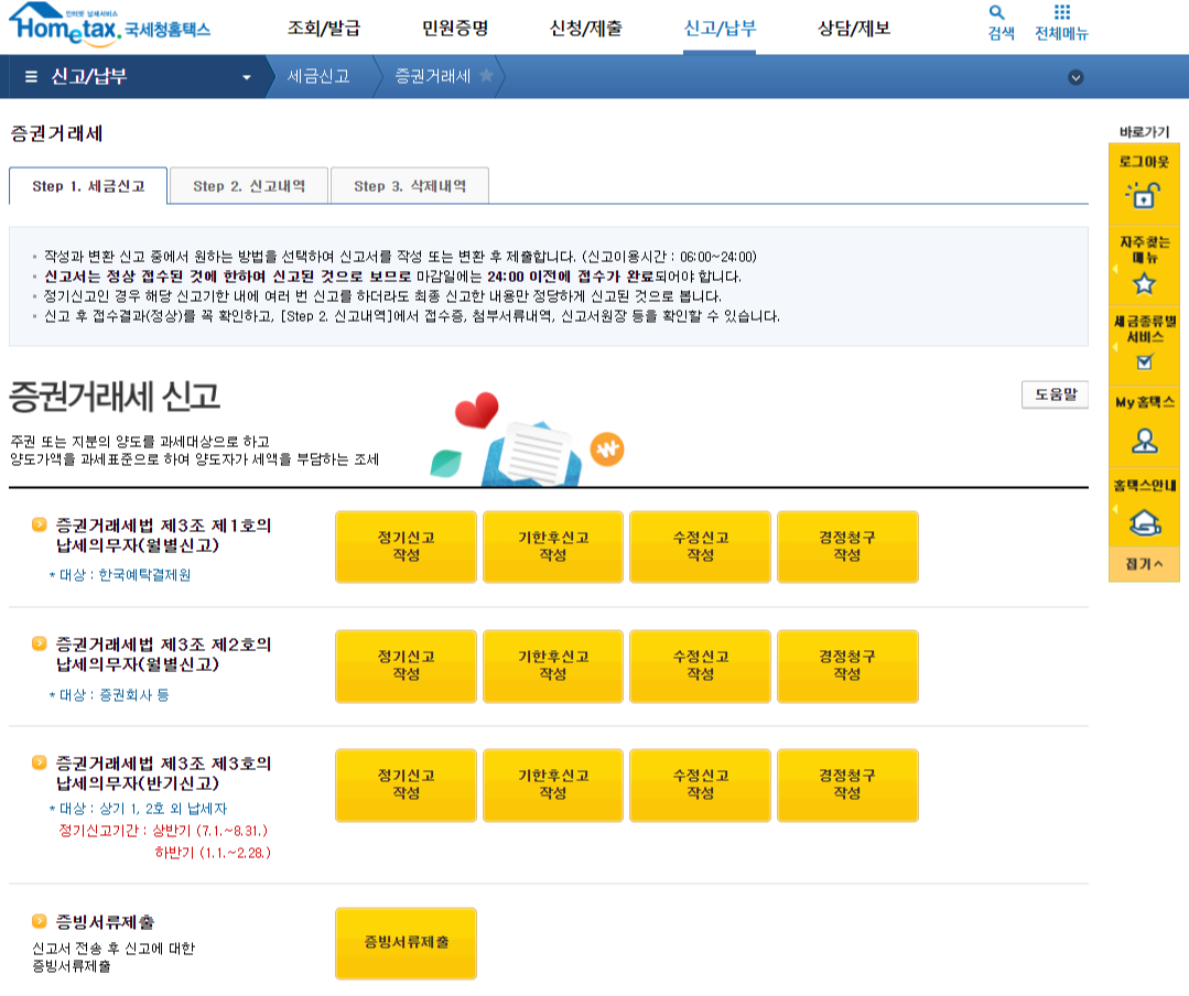 홈택스에서 간편하게 비상장주식의 증권거래세를 신고할 수 있습니다.