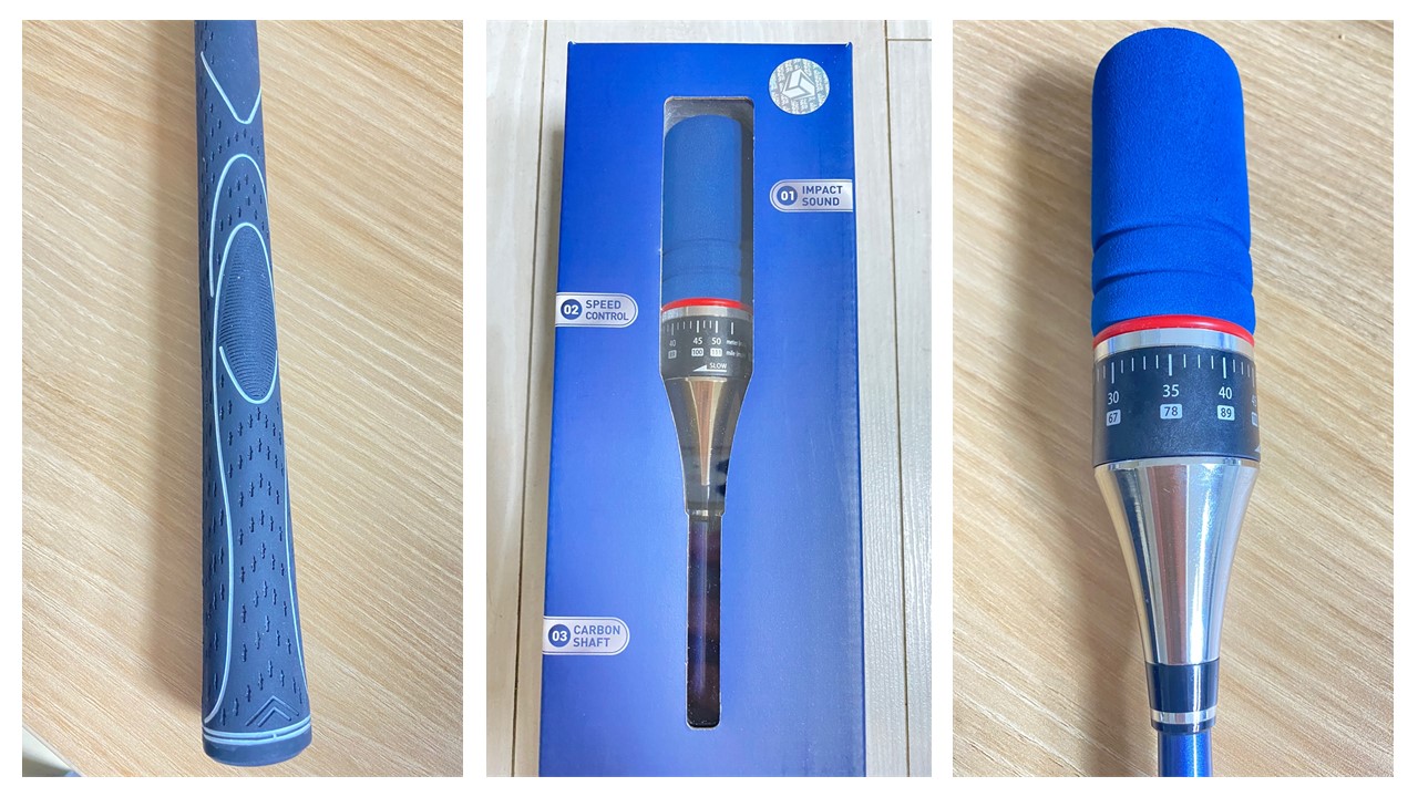 포장을 개봉하면 파란색으로 된 헤드부분을 확인할 수 있습니다. 이 부분이 의외로 무게가 나가서 실제로 골프채를 휘두르는 느낌을 받을 수 있습니다.