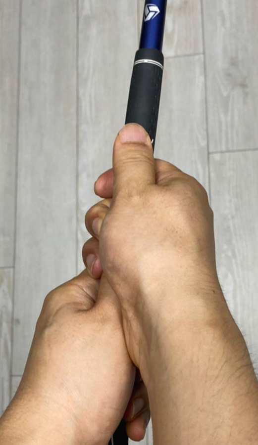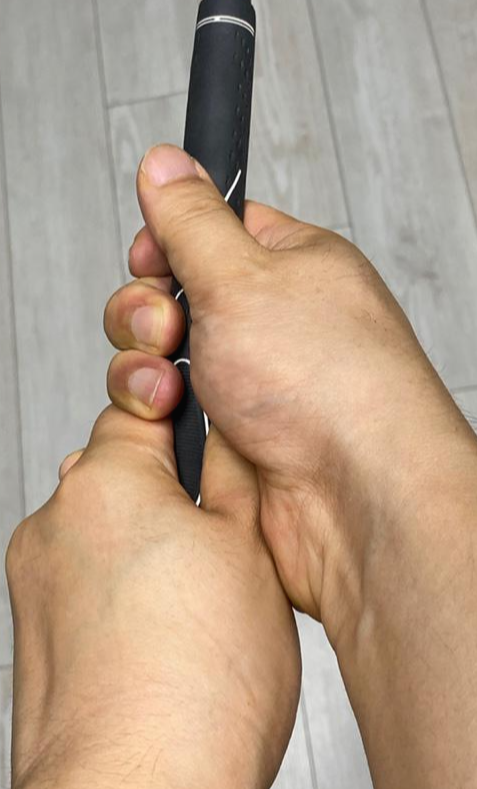 평소 그립을 잡는 것보다 왼쪽 손을 조금 안쪽으로 잡는 것입니다.