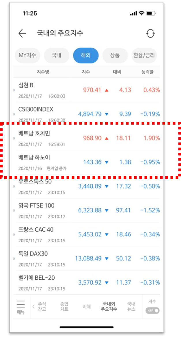 ※ 미래에셋대우를 주식 매매앱을 확인해보면 실제로 호찌민 시장과 하노이 시장 각각 보이는 것을 확인할 수 있습니다.