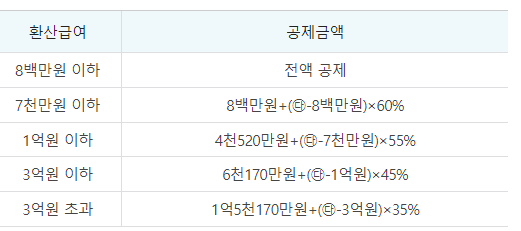 위에서 계산한 값을 토대로 환산급여 계산합니다.