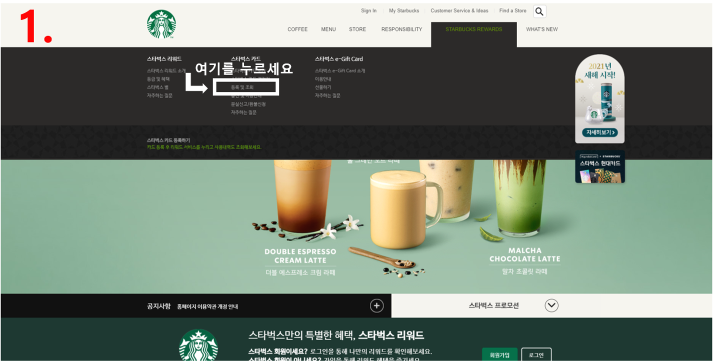 스타벅스 홈페이지에서 잔액을 확인할 수 있습니다. 단, 회원가입을 해야 하는 맹점이 있습니다.