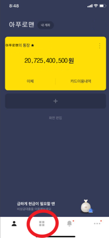 1. 카카오뱅크 앱을 설치한 뒤 로그인합니다.